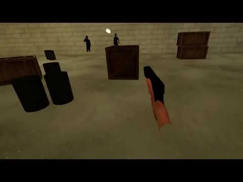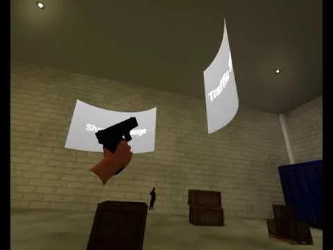 To help bring the interaction into a 3d environment and normalize VR use, we changed the environment from a shooting gallery to a 360-degree environment. The original gallery was a warehouse, so we kept those assets. To add in a wrinkle, targets either had a knife or a phone in their hands, forcing the player to do a modicum of threat recognition in addition to simple point-and-shoot mechanics.